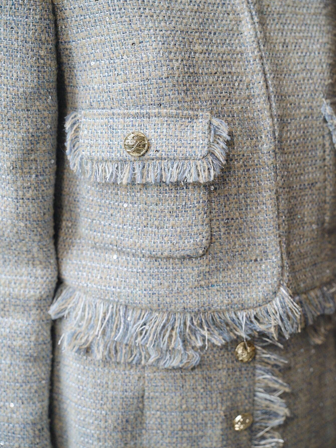 Lichtblauwe Tweedelige Tweed Set | Damespakken | Elegante en Zakelijke Uitstraling