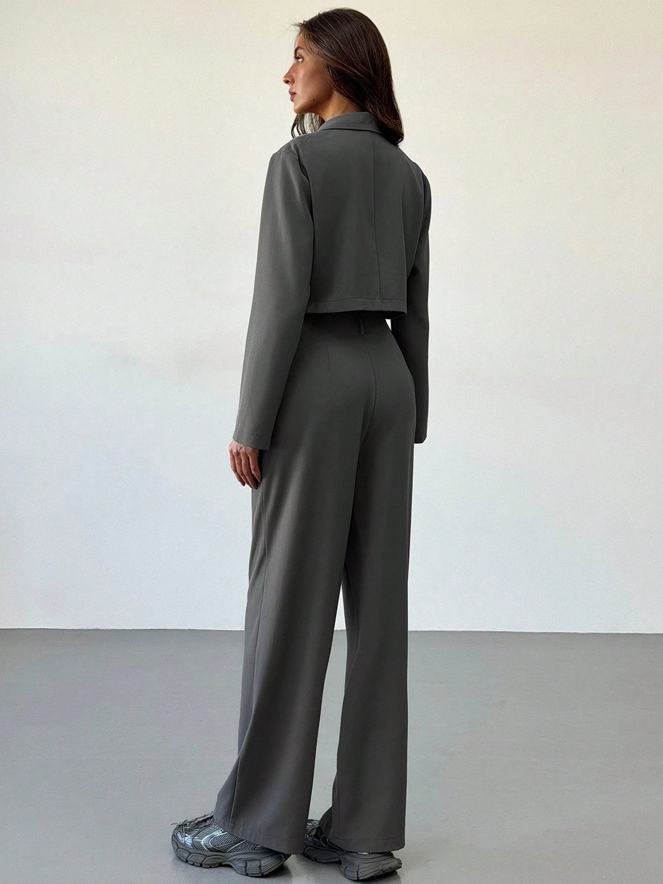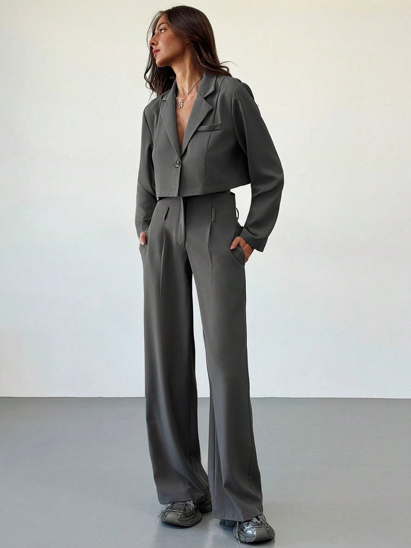 Retro Cropped Collar Pak | Damespakken | Chic Tweedelig Pak met Hoge Taille Broek voor Kantoor