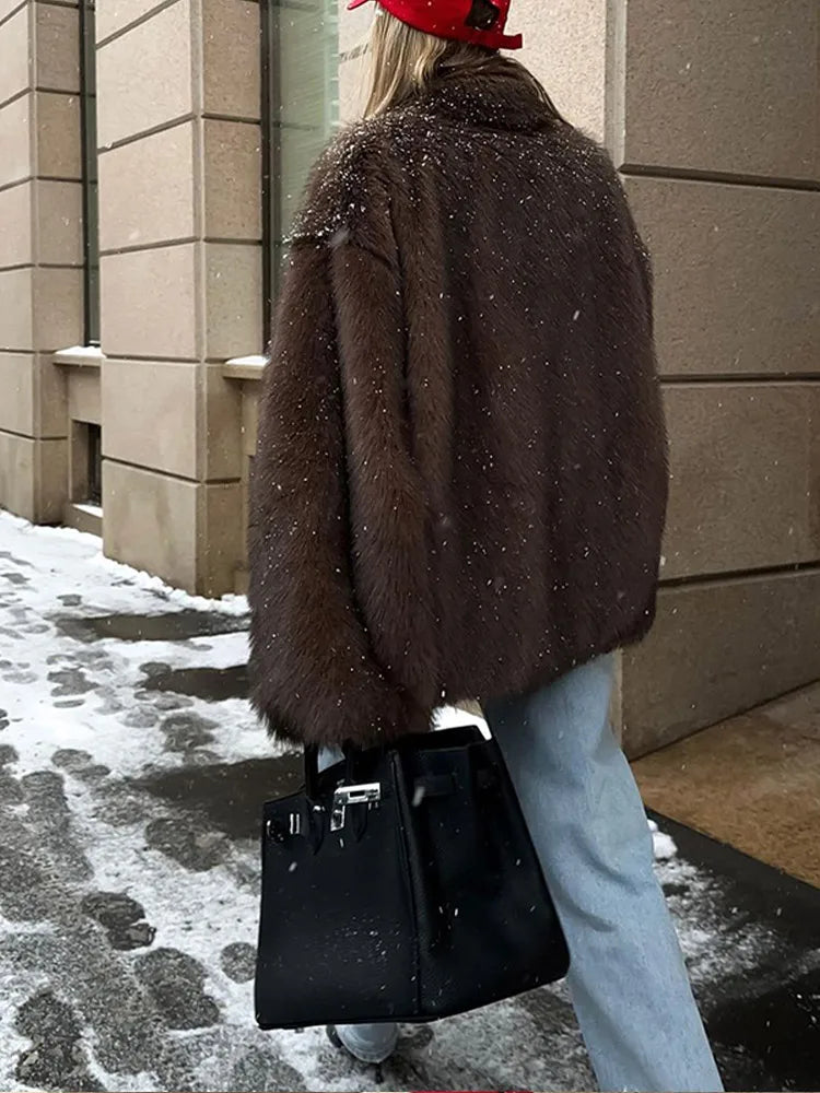 Luxe Dames Faux Bontjas - Bruine Winter Elegantie