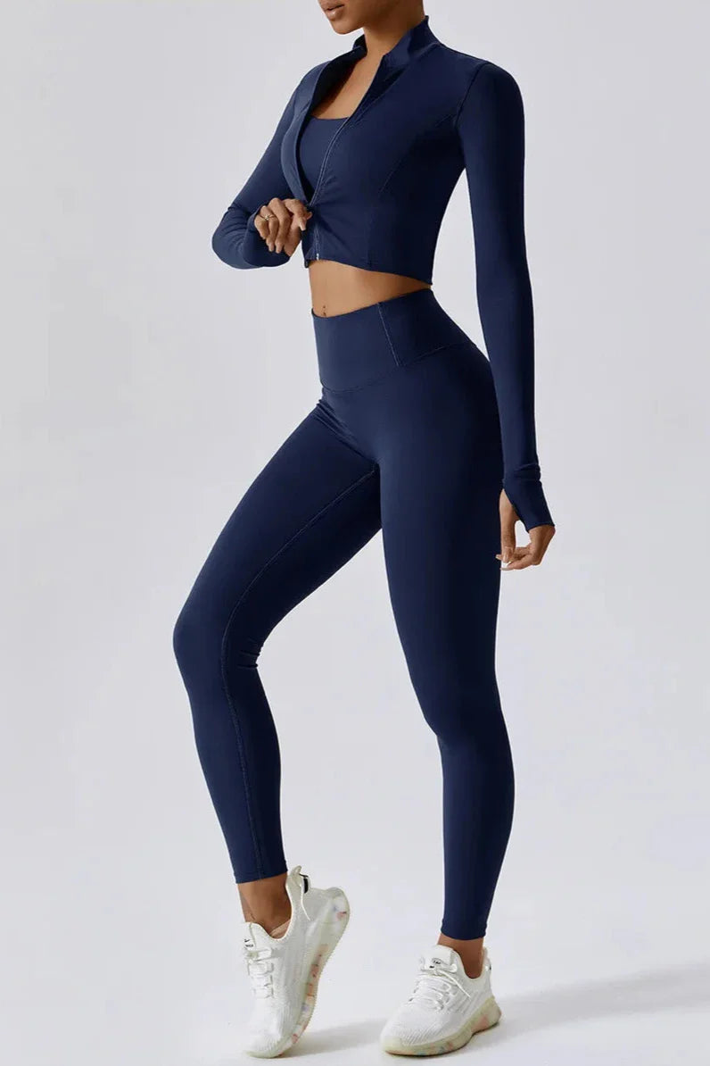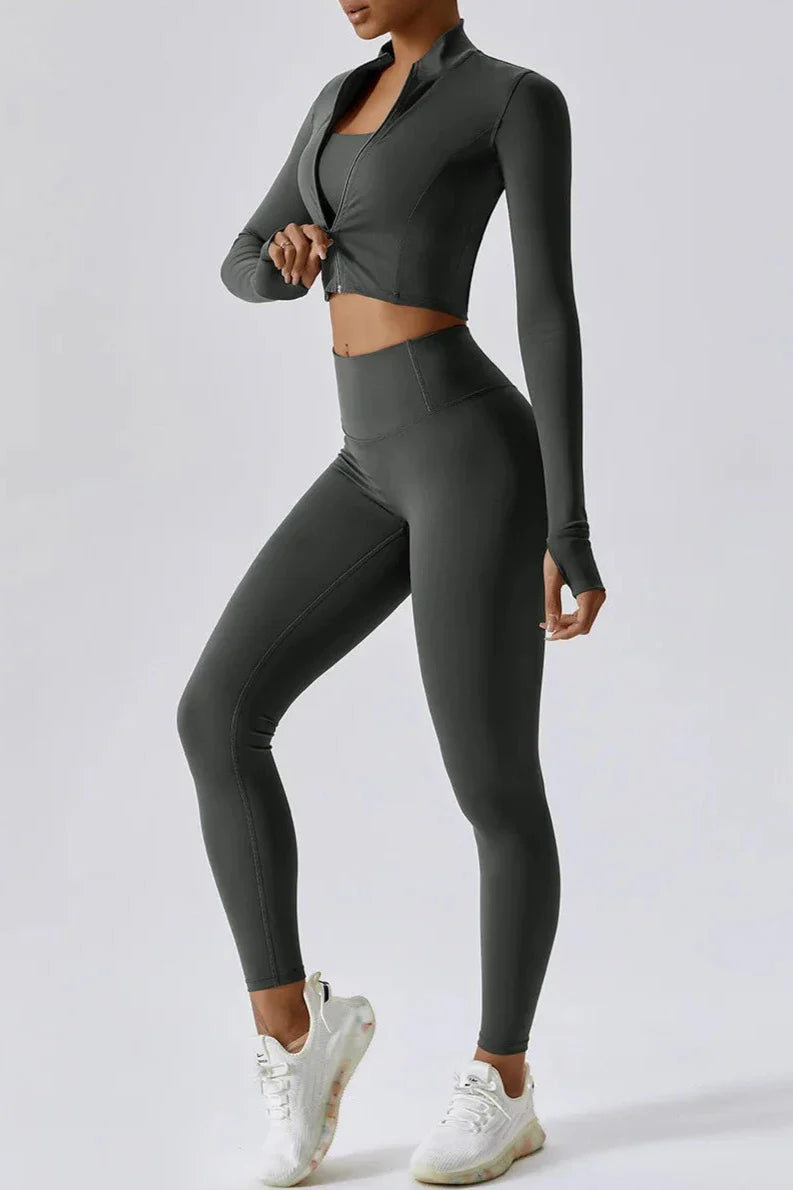 DJESSY | Set van top met volledige rits en legging met hoge taille
