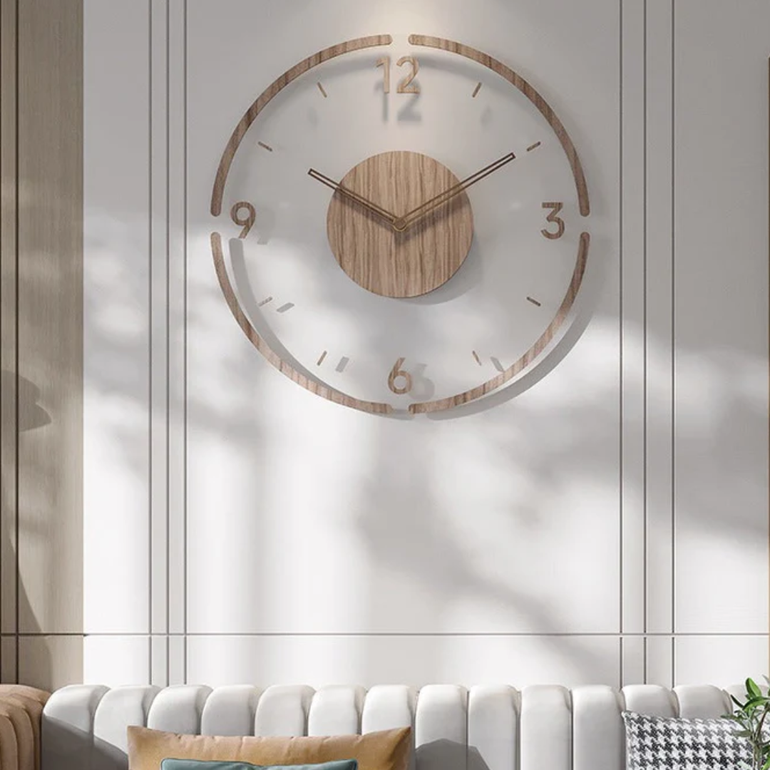 Nordic Stijlvolle Houten Wandklok – Geruisloze Beweging