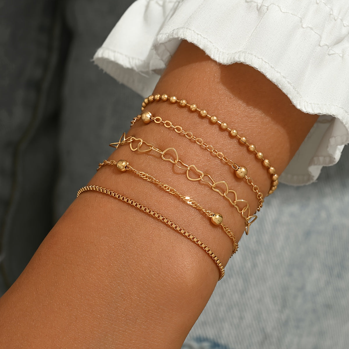 La Perfection Vintage | 5-Delige Armbanden Set Met Parel- en Metaaldetails | Veelzijdig en Elegant - Voor Elke Gelegenheid