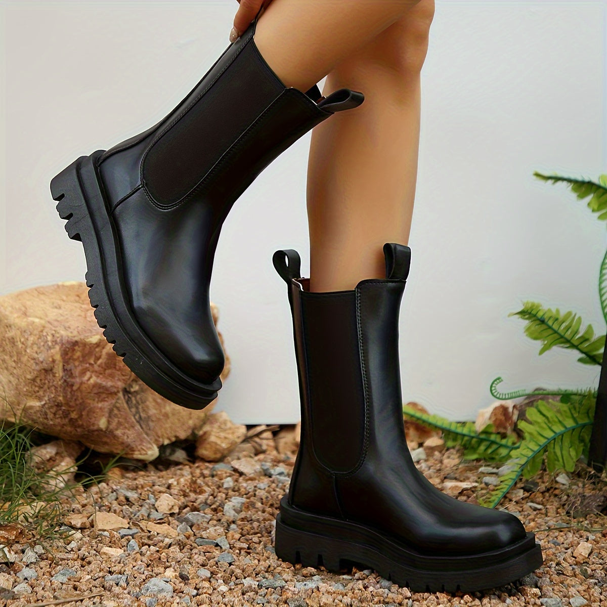 Dames Laarzen - Hoge Blokhak - Faux Leer - Stijlvolle Westerse Look - Zacht Voeringmateriaal - Perfect voor Koude Dagen