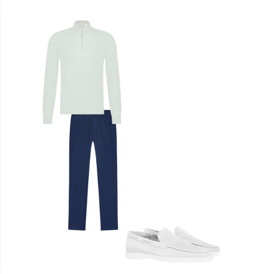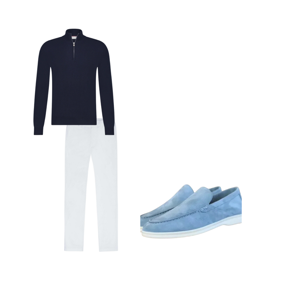 Outfit Heren Wit/Blauw | Elegant - Comfortabel - Zakelijk - Ademend - Hoogwaardig Suède - Merinowol