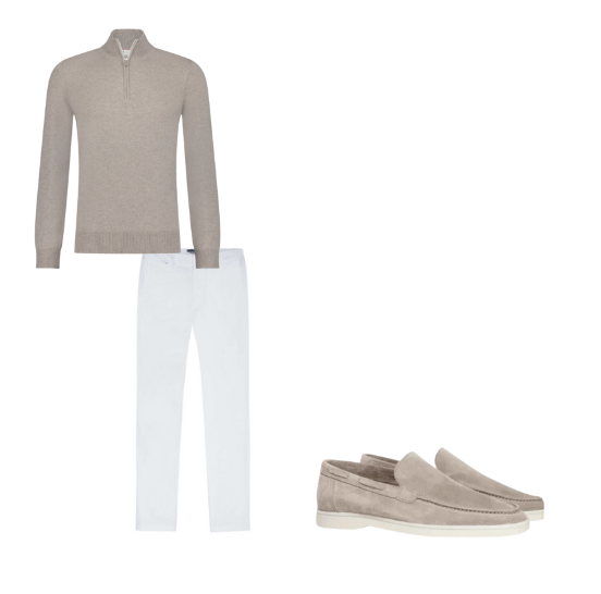 Outfit Heren Beige/Wit | Elegant - Comfortabel - Zakelijk - Ademend - Hoogwaardig Suède - Merinowol