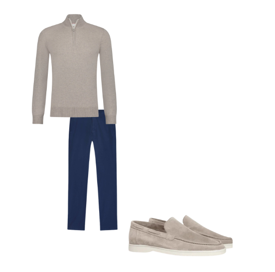 Outfit Heren Beige/Blauw | Elegant - Comfortabel - Zakelijk - Ademend - Hoogwaardig Suède - Merinowol
