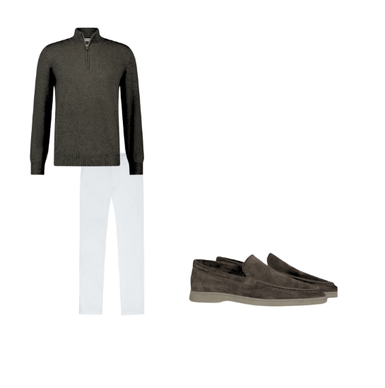 Outfit Heren Bruin/Wit | Elegant - Comfortabel - Zakelijk - Ademend - Hoogwaardig Suède - Merinowol
