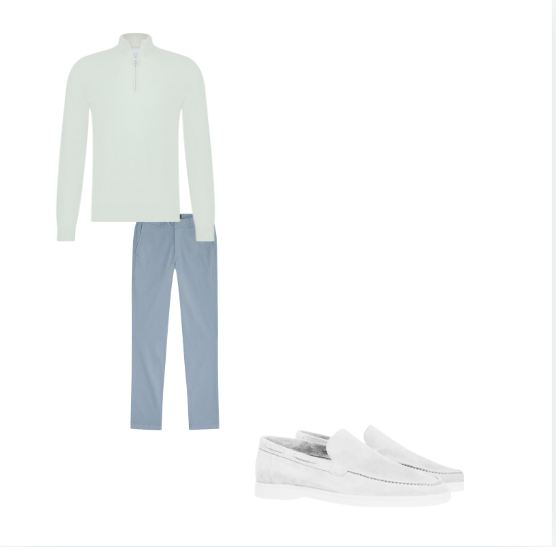 Outfit Heren Wit/Lichtblauw | Elegant - Comfortabel - Zakelijk - Ademend - Hoogwaardig Suède - Merinowol