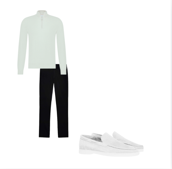 Outfit Heren Wit/Zwart | Elegant - Comfortabel - Zakelijk - Ademend - Hoogwaardig Suède - Merinowol