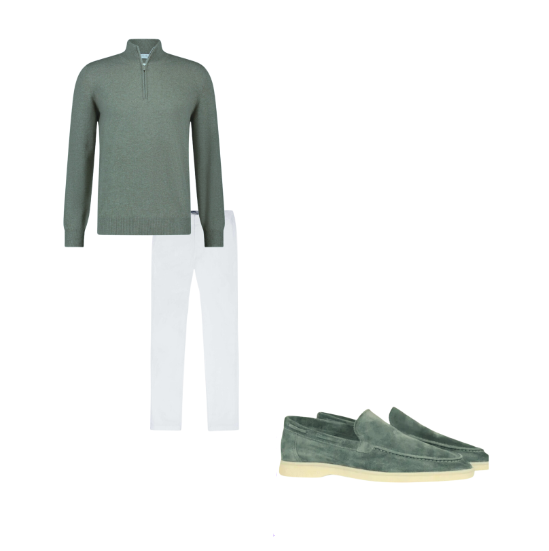 Outfit Heren Groen/Wit | Elegant - Comfortabel - Zakelijk - Ademend - Hoogwaardig Suède - Merinowol