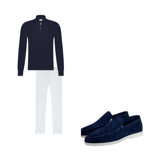Outfit Heren Navy Blauw/Wit | Elegant - Comfortabel - Zakelijk - Ademend - Hoogwaardig Suède - Merinowol