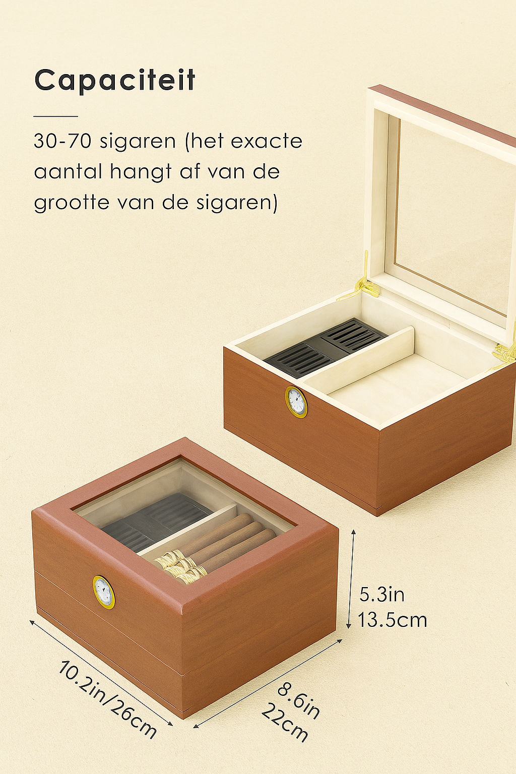 Luxe sigaren humidor met hygrometer | Sigarenaccessoire | Stijlvolle sigarenbox met bevochtiger en cederhouten binnenkant