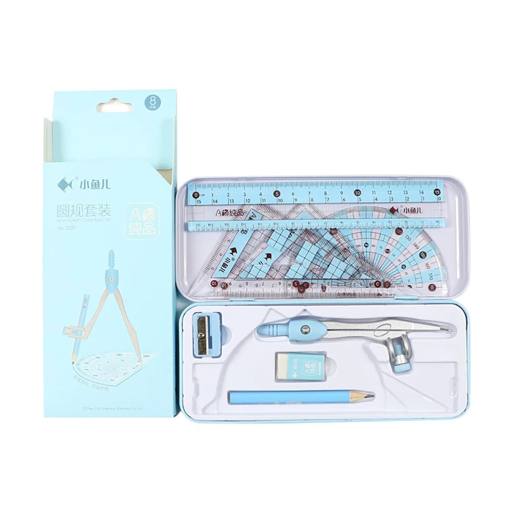 8-delige meetkundige liniaal- en potlodenset | Tekenset | Schoolset voor wiskunde en geometrie studenten