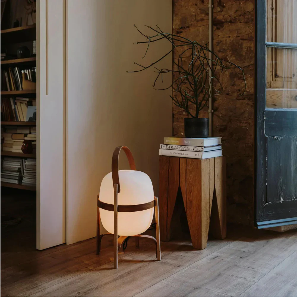 Japandi Tafellamp – Draagbare Glazen Lantaarnlamp voor Sfeervolle Verlichting