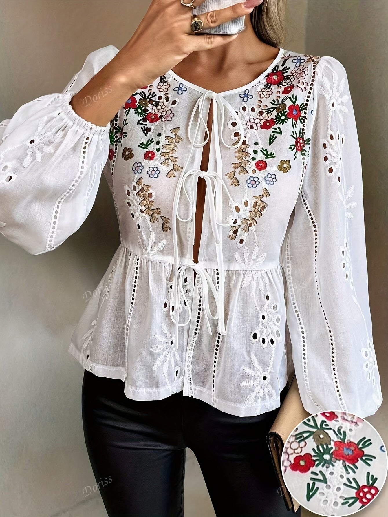 Elegant Floral Tie-Front Dames Blouse | Duurzaam - Must-Have - Stijlvol & Comfortabel - Lente/Zomer/Herfst