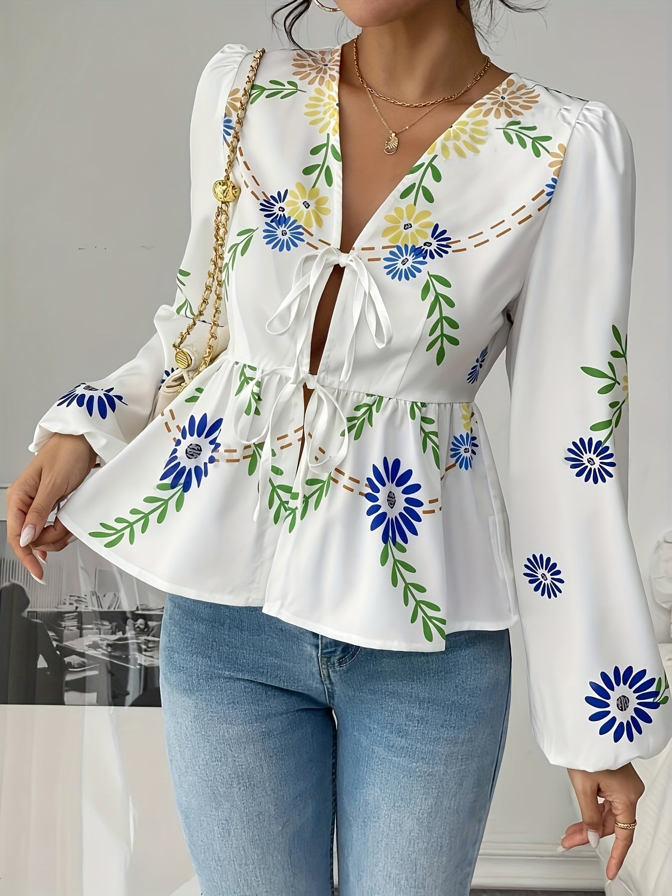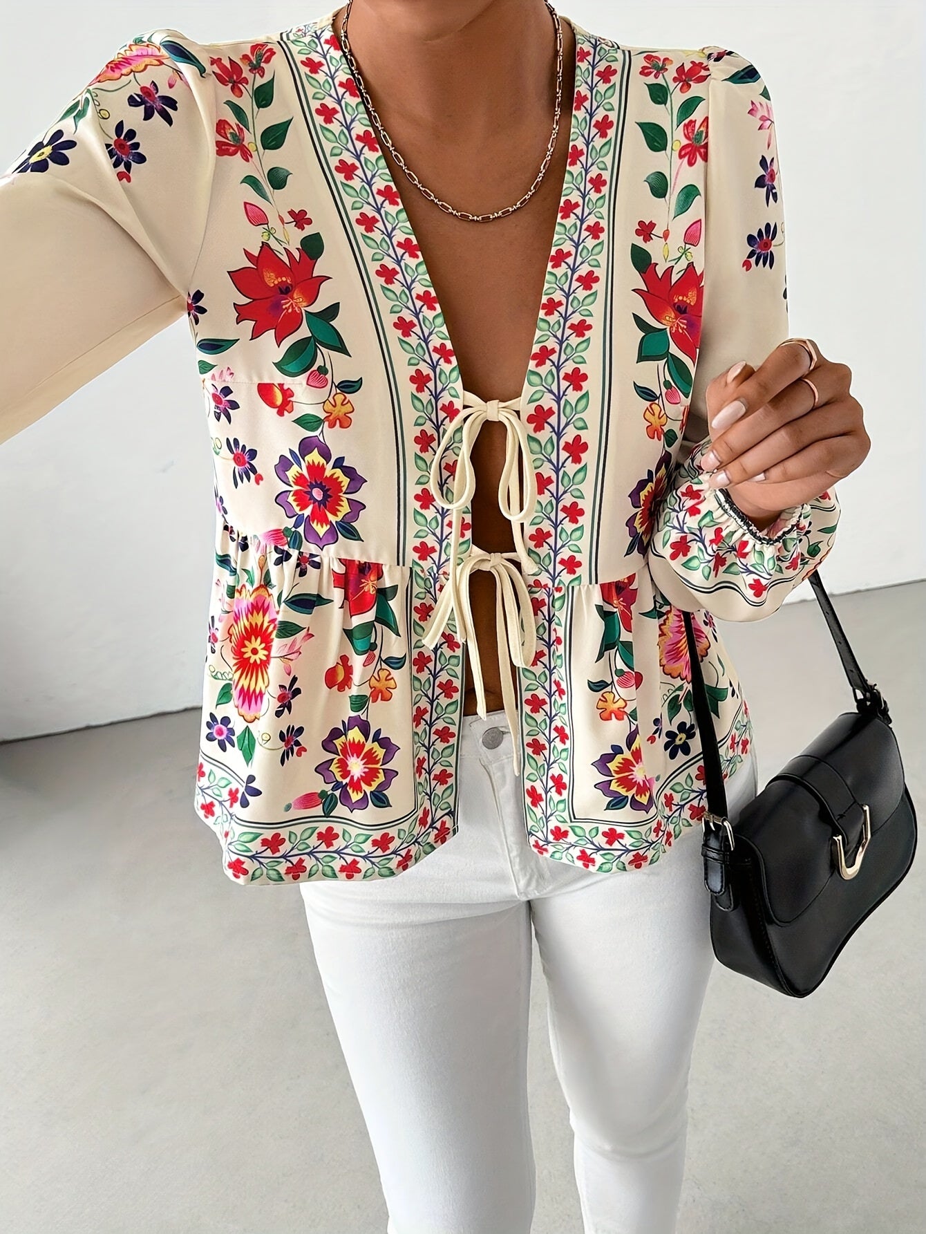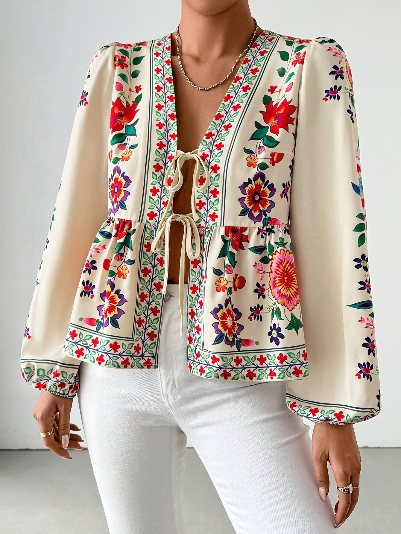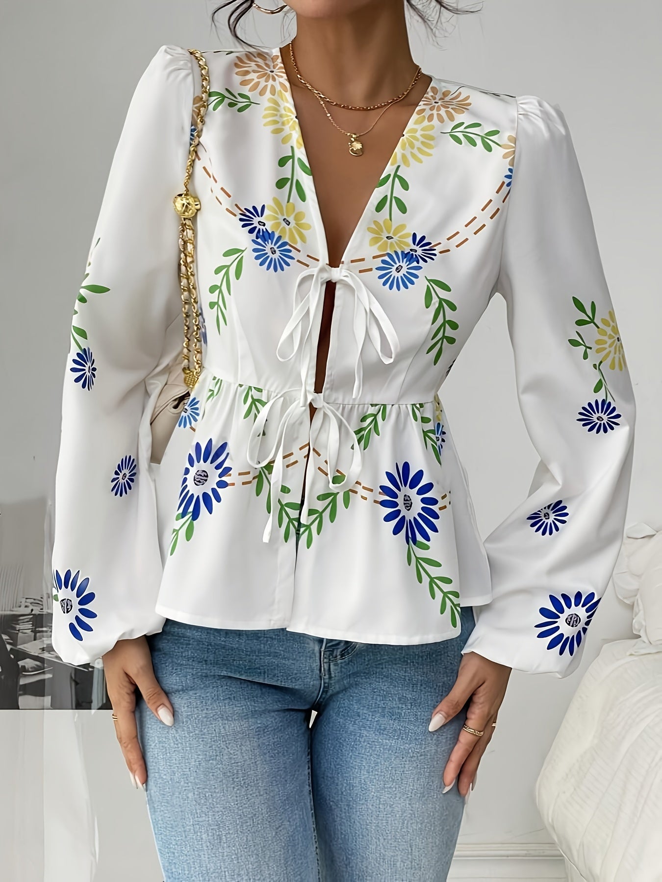 Floral Print Tie-Front Dames Blouse | Duurzaam - Must-Have - Stijlvol & Comfortabel - Lente/Zomer/Herfst